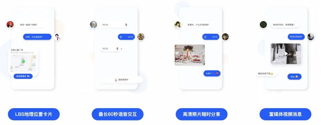 「+Message」,功能包括聊天、群聊、视频、GIF、文件和位置共享等.